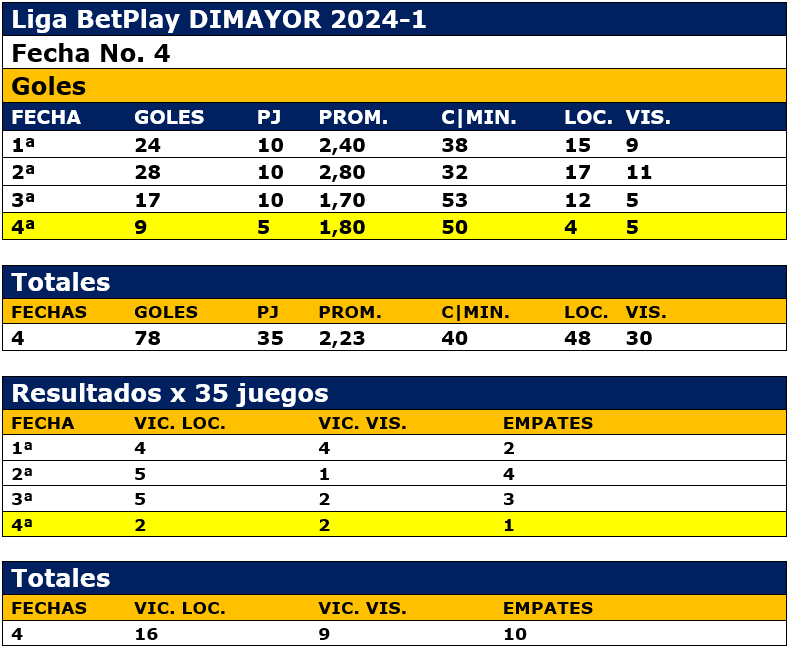 Estadísticas, 78 goles en 35 partidos, 2,23 por juego