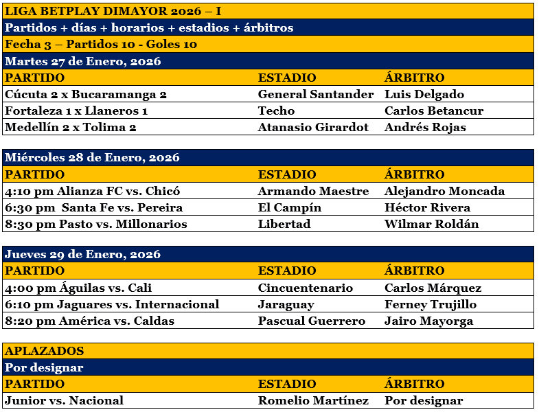 Este miércoles sigue la 3ª fecha, Alianza vs. Chicó, Santa Fe vs. Pereira y Pasto vs. Millonarios