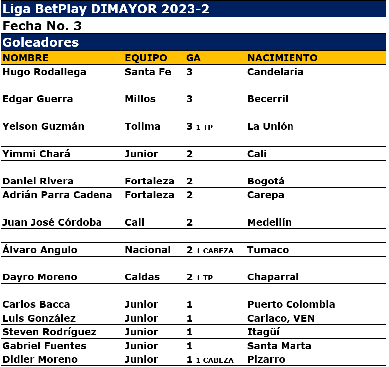 Goleadores, 1º Rodallega, Guerra y Guzmán