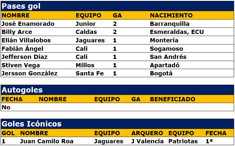 Goleadores, Edgar Guerra 3 goles, José Enamorado 2 pases gol