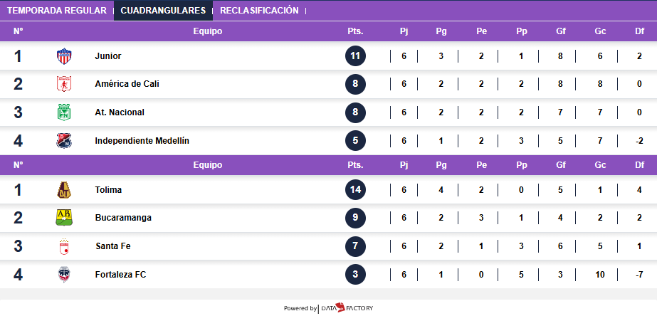 Junior y Tolima, los ganadores de los grupos A y B en los Cuadrangulares