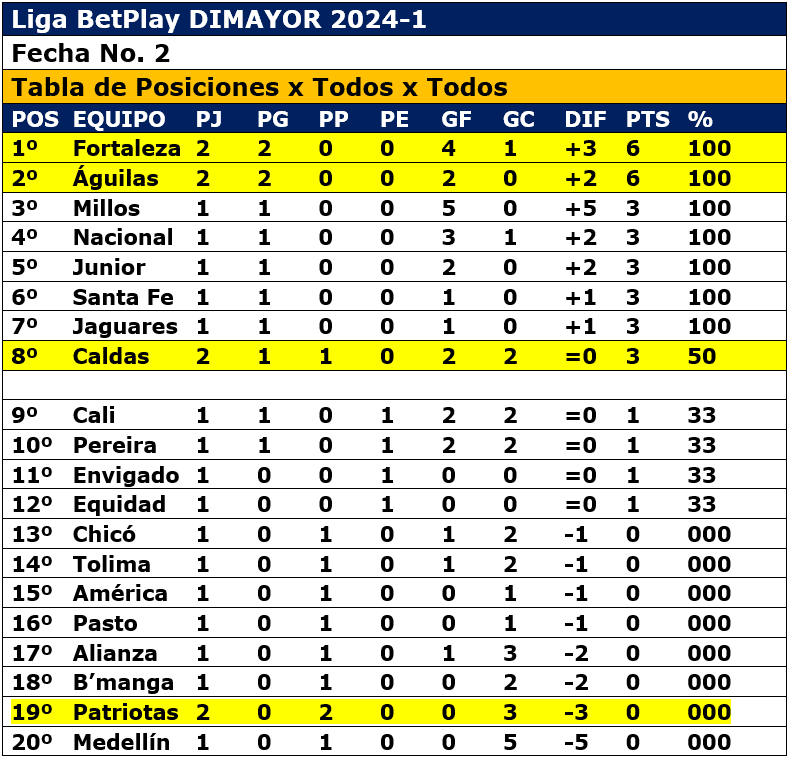 Las posiciones, 1º Fortaleza, 2º Águilas, ambos con 6 puntos