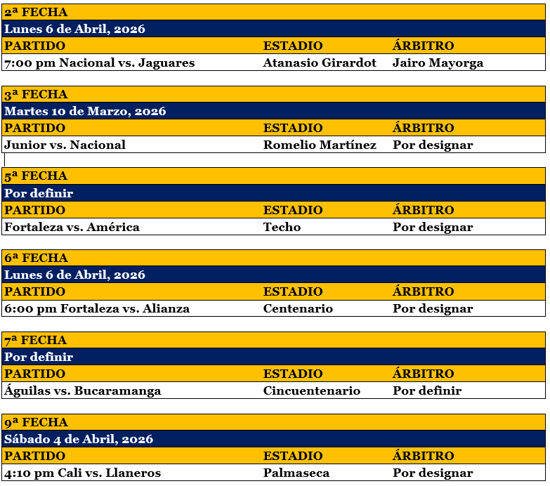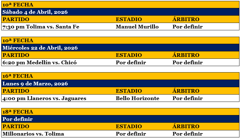 Programación de los partidos aplazados y adelantados de la Liga Betplay