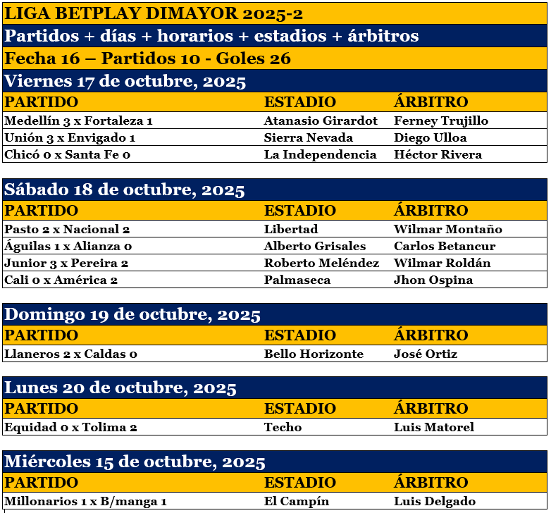 Terminó la 16ª fecha de la Liga, 5 triunfos locales, 2 visitantes y 3 empates