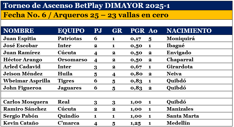 25 arqueros, 1 extranjero, 23 vallas en cero