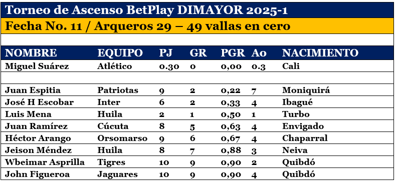 29 arqueros, 1 extranjero, 49 vallas en cero
