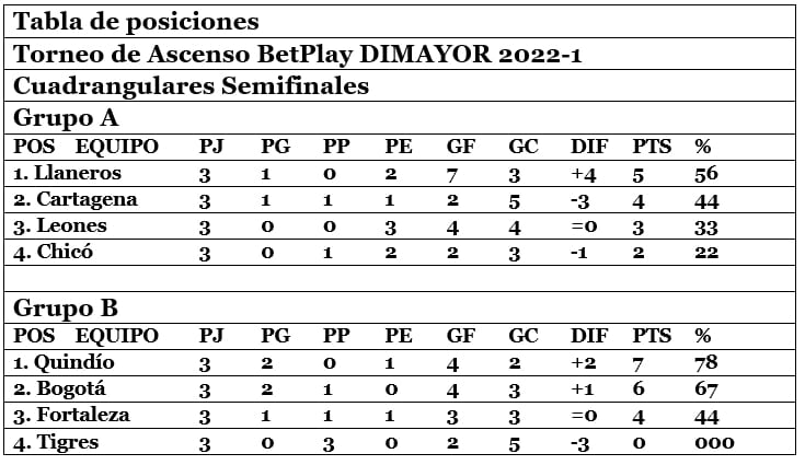 Terminó la Fecha 3 de los Cuadrangulares Semifinales del Torneo de Ascenso BetPlay DIMAYOR 2022-1.