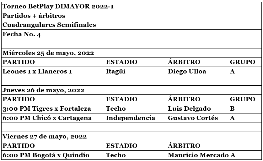Se está jugando la Fecha No. 4 de los Cuadrangulares Semifinales del Torneo de Ascenso BetPlay DIMAYOR 2022-1.