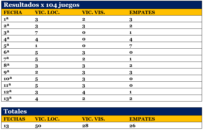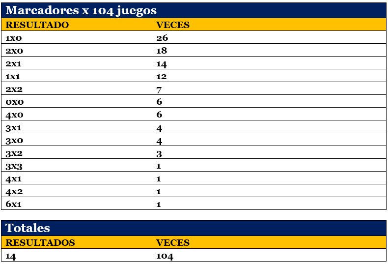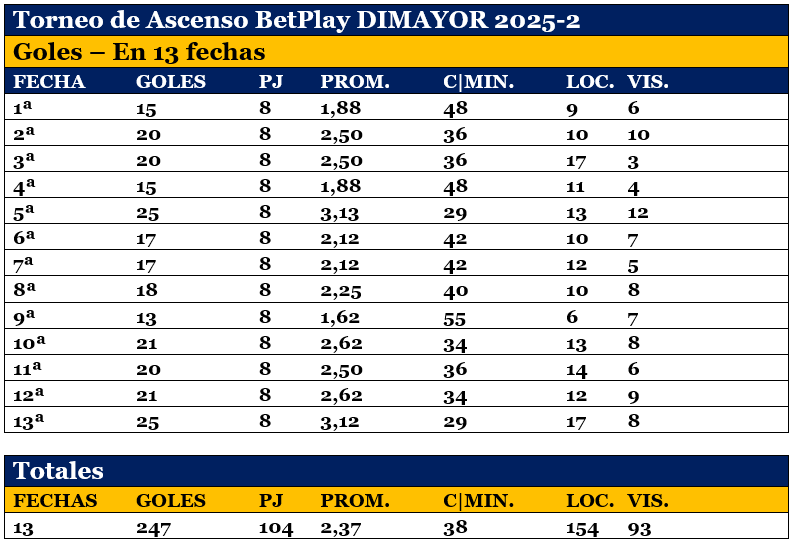 En 13 fechas, 247 goles en 104 partidos, un gol cada 38 minutos