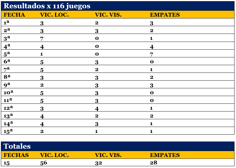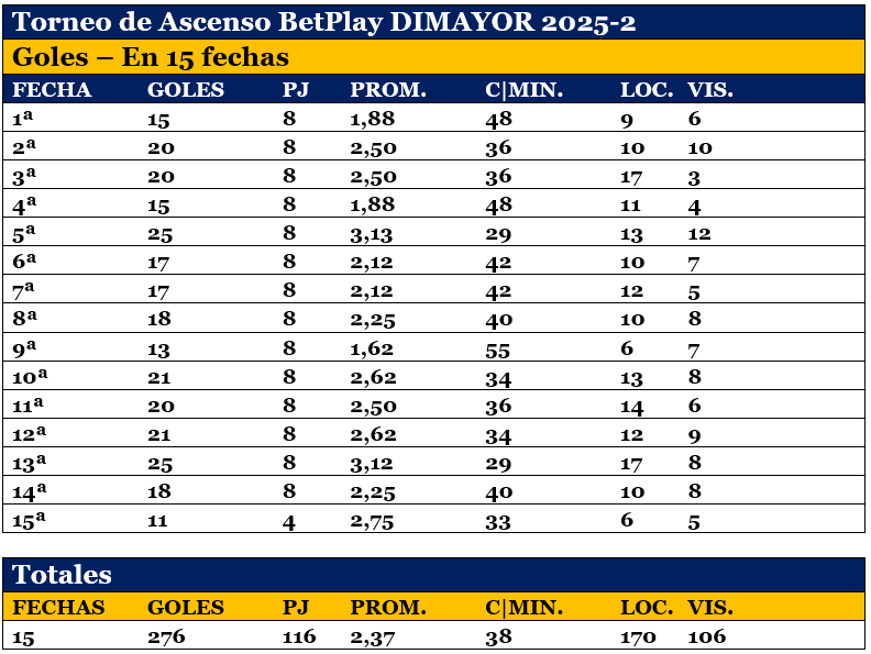 En 15 fechas, 276 goles en 116 partidos, un gol cada 38 minutos