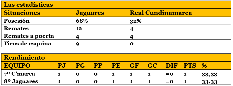 | Marcador Final Jaguares 1 x Real Cundinamarca 1 |