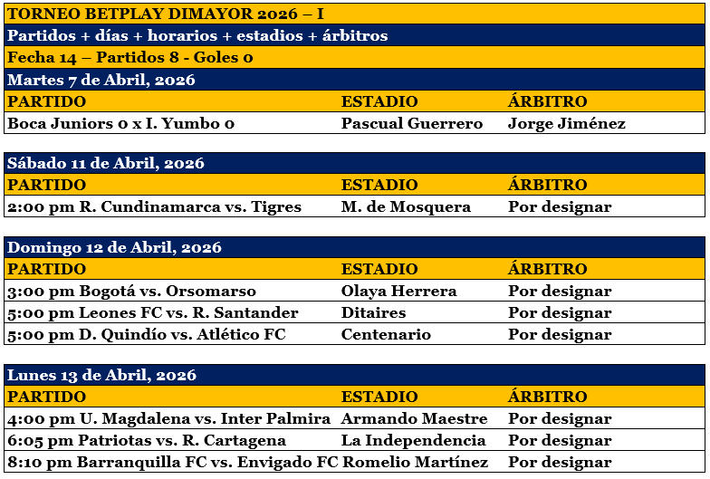 Este sábado sigue la 14ª fecha con Real Cundinamarca vs. Tigres
