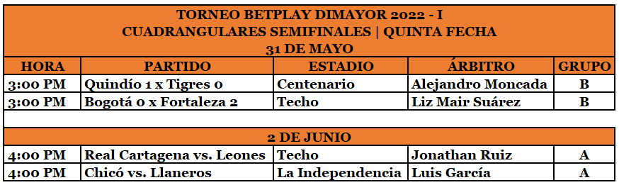 Quindío y Fortaleza definirán al ganador del Grupo del Cuadrangular Semifinal del Torneo de Ascenso BetPlay DIMAYOR 2022-1, luego de ganar sus partidos de la penúltima fecha la tarde del martes en horario unificado de las 3:00 PM.