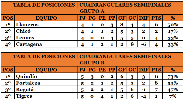 Quindío es 1º en el Grupo B con 11 puntos y diferencia de goles de +3.