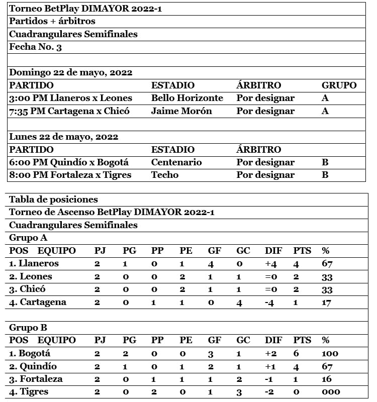 Tercera fecha de los Cuadrangulares Semifinales del Torneo Betplay