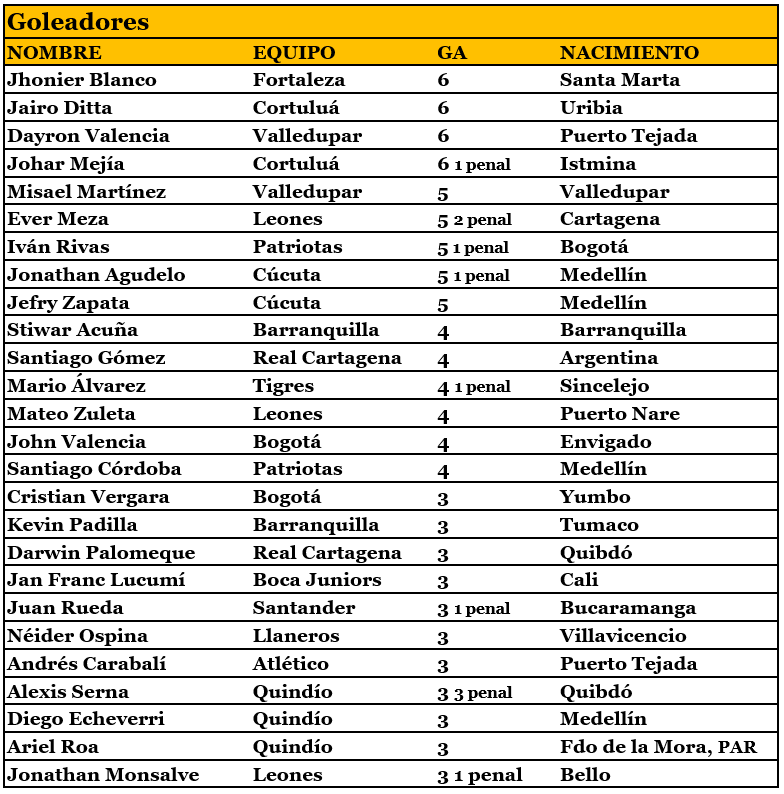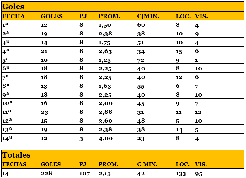 Torneo Betplay, 107 partidos, 228 goles, 1 gol cada 42 minutos