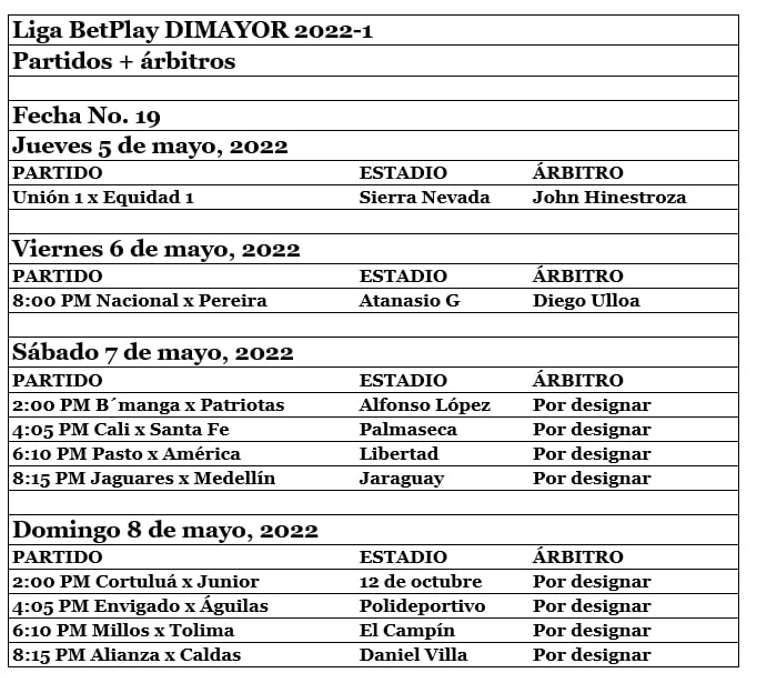 En la fecha No. 20 (última de la Liga), Unión Magdalena visitará al Unión Magdalena y Equidad será local ante Nacional.