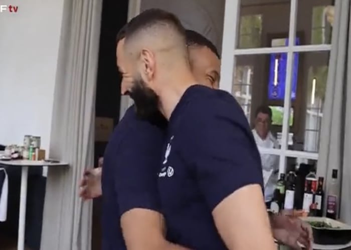 Llegado hacia las 19h00 locales (17h00 GMT) después de las celebraciones el domingo de la 14ª Champions del Real Madrid (5ª de Benzema) en la capital española, ‘KB9’ llegó al centro de concentración de los ‘Bleus’, que estaban en pleno entrenamiento a esa hora, pero que no tardaron en encontrarse con él para felicitarle luego del título.