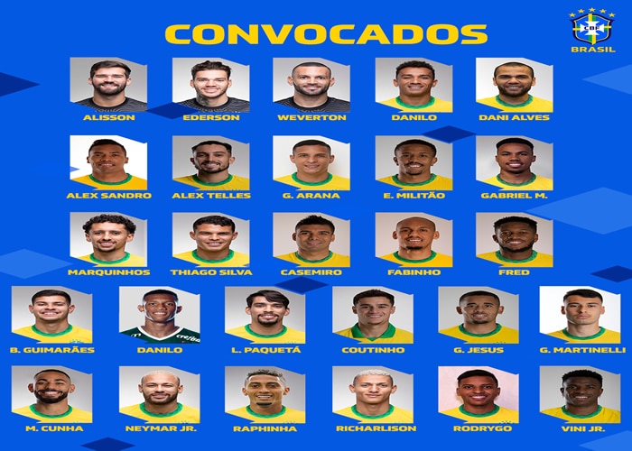 La lista de convocados de Brasil es: