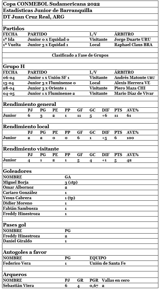 Junior, rendimiento 61% en la Copa Sudamericana