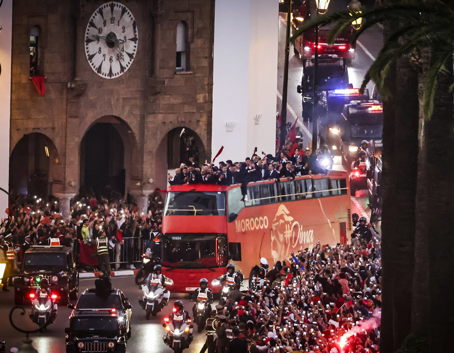 Decenas de miles de hinchas marroquíes recibieron como héroes a los jugadores de su equipo nacional de fútbol en Rabat, como agradecimiento a su gran recorrido en el Mundial de Catar-2022, donde alcanzaron las semifinales y firmaron así la mejor actuación histórica en el torneo de una selección africana o árabe.
