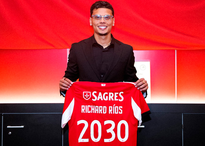 Richard Ríos, mediocampista colombiano, fue presentado oficialmente como nuevo integrante del Benfica, firmando un contrato hasta el 30 de junio de 2030 con una cláusula de rescisión de 100 millones de euros. El traspaso desde Palmeiras se cerró por 27 millones de euros, más 419 mil euros adicionales como mecanismo de solidaridad para los clubes formadores del jugador.