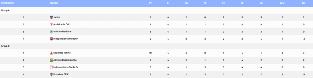 Este resultado consolidó al cuadro rojiblanco en el primer lugar del Grupo A con 8 puntos, le sigue América de Cali con 5, en el 3er lugar Nacional con los mismos 5 (lo supera el escarlata por goles a favor) y en el último lugar quedó Medellín con apenas 2 puntos.