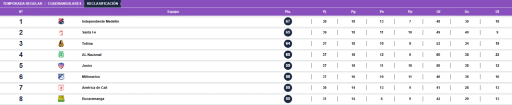 En la Tabla de Reclasificación, pasó de estar a 5 puntos del Deportivo Independiente Medellín, actual líder, a 8 puntos. También se vio superado por Atlético Nacional y Millonarios FC lo sigue de cerca.