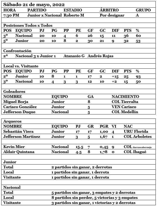 Comparativa Junior vs. Nacional