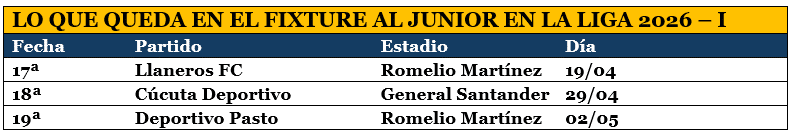 Es decir, al Junior solo le bastan 3 puntos para asegurarse en la siguiente fase de Liga. Aunque el Tiburón deberá sumar unos puntos más para ser cabeza de serie en los Play – Off.