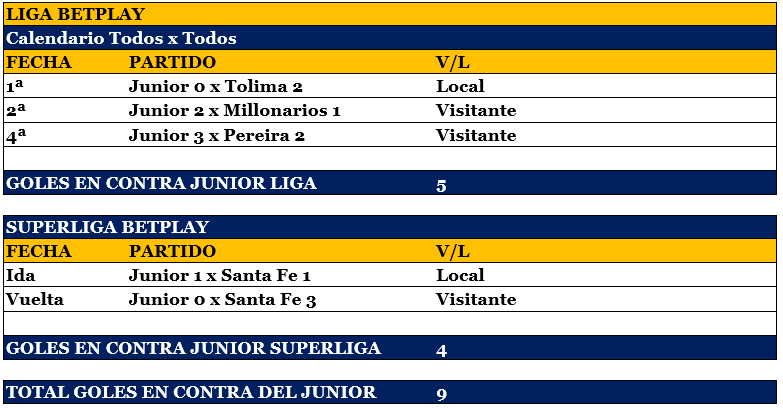 En Junior de Barranquilla hay un inmenso dolor de cabeza llamado los goles en contra. El cuadro Tiburón ha disputado en este 2026, 5 partidos (3 en Liga y 2 en Superliga).