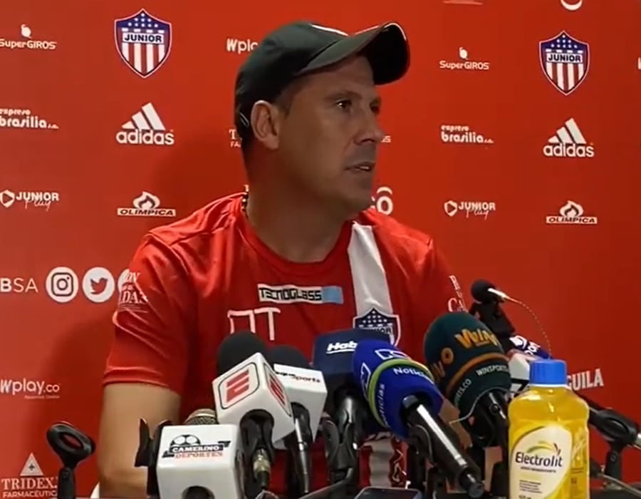 El DT aclaró los rumores de las últimas horas sobre su continuidad en Junior y la reunión con los directivos: “Como hablé con los directivos cuando clasificamos contra Equidad, que era importante para entrar a la fase de grupos por el dinero, cuando hablé con los directivos cuando clasificamos a la Copa Betplay y a las Semifinales de Liga, hablé con los directivos por la eliminación de Copa Sudamericana. Es algo que nos ha dolido mucho, por la forma que se dio, porque veníamos muy bien. Fue un mazazo para nosotros, pero hay que levantarse, sacudirse y seguir adelante. No pasa nada en el sentido anímico, hay que seguir. Acá es como la vida misma, hay que seguir adelante. Son vicisitudes que pasan, que son normales y eso lo acepto, por eso vengo acá y pongo la cara, pregunten lo que quieran, no voy a esconderme. Estamos fuertes y lo vamos a demostrar el sábado”.
