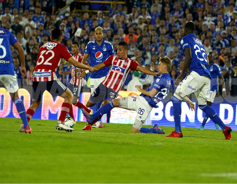 Para el segundo tiempo, Millonarios lució impotente ante un Junior que se conformó con el empate. Sobre todo, por quedarse con 10 hombres ante la absurda segunda amarilla que recibió Fabián Viáfara.