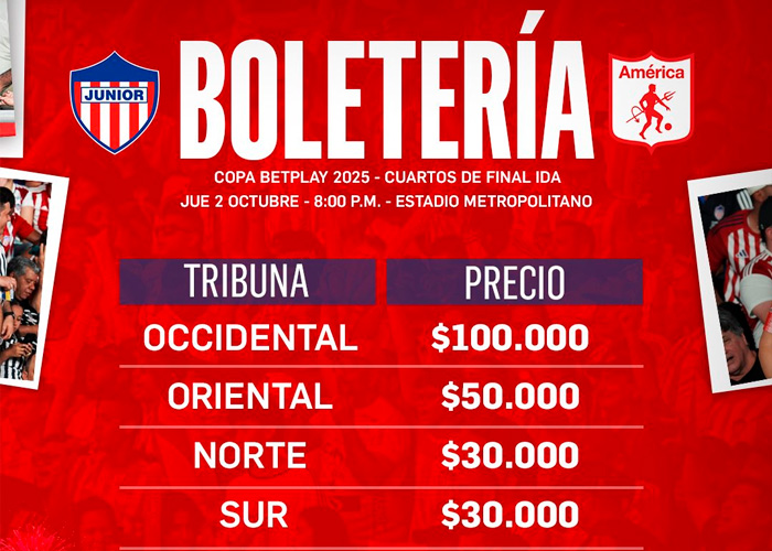 Junior de Barranquilla recibirá al América de Cali en la Ida de los Cuartos de Final de la Copa Betplay que se jugará, este jueves a partir de las 8:30 PM, en el Estadio Roberto Meléndez.