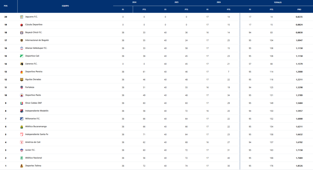 Así está la situación de la Tabla del Descenso a dos fechas que termine el Todos contra Todos 2026 – I.