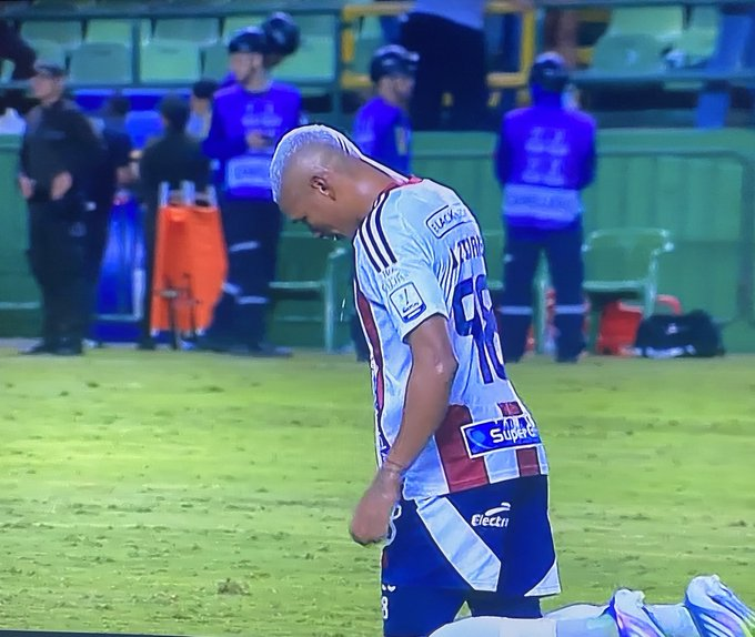 Al finalizar el partido, Peña se puso de rodillas y recorrió la cancha de Palmaseca.