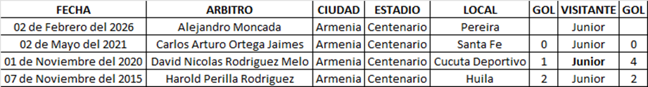 En condiciones normales, Junior de Barranquilla iría a jugar en el Estadio Centenario de Armenia para enfrentar al Deportes Quindío, quien oficial de local en esa plaza. Sin embargo, este lunes será la cuarta visita a este escenario donde no se medirá al conjunto cuyabro.