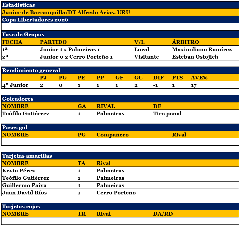 Temas relacionadosJunior de Barranquilla | Fútbol Internacional | Copa Libertadores