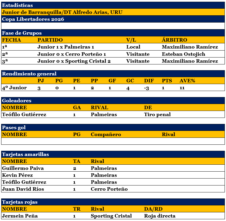 Temas relacionadosJunior de Barranquilla | Fútbol Internacional | Copa Libertadores