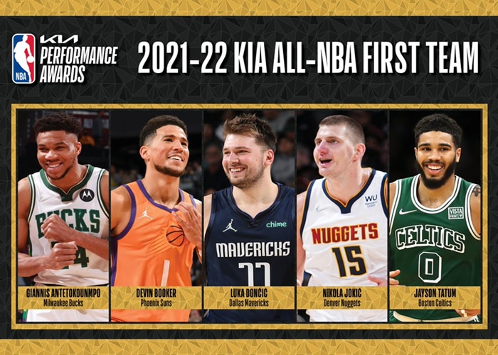 El griego Giannis Antetokounmpo, alero de los Milwaukee Bucks, el esloveno Luka Doncic, de los Dallas Mavericks, y el serbio Nikola Jokic, de los Denver Nuggets, fueron elegidos este martes al primer equipo ‘All-Star’ de la temporada 2021-2022 de la NBA.