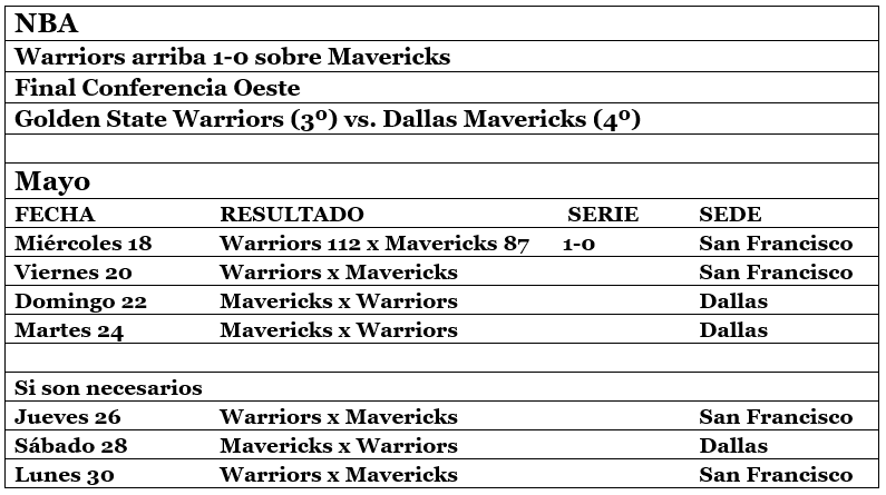 Con una gran actuación defensiva, los Golden State Warriors se impusieron el miércoles a los Dallas Mavericks por un rotundo 112-87 en el arranque de las finales de la Conferencia Oeste de la NBA.