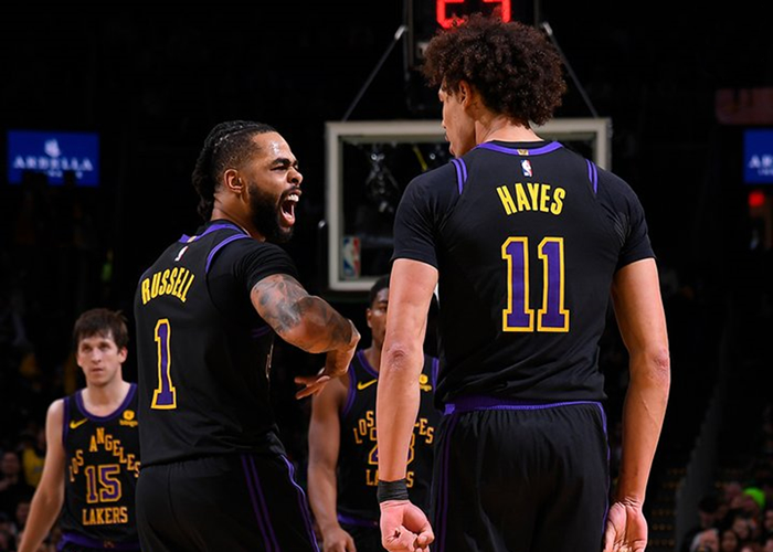 Con James y Davis, sus dos líderes, en el banco vestidos de calle, otras piezas habitualmente secundarias de los Lakers dieron un paso adelante, especialmente el pívot Jaxson Hayes (16 puntos y 10 rebotes) y el japonés Rui Hachimura (15 y 8) .