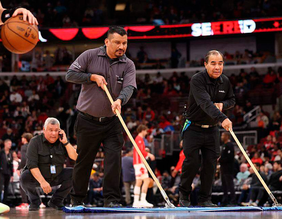 El árbitro Sean Wright le contó a un reportero de la sala de billar que los jugadores le informaron por primera vez sobre la cancha resbaladiza durante los calentamientos. A pesar de los esfuerzos del personal del United Center, que incluían caminar por la cancha con toallas gruesas en los pies, “simplemente no pudimos garantizar una experiencia segura en la cancha”, dijo Wright.
