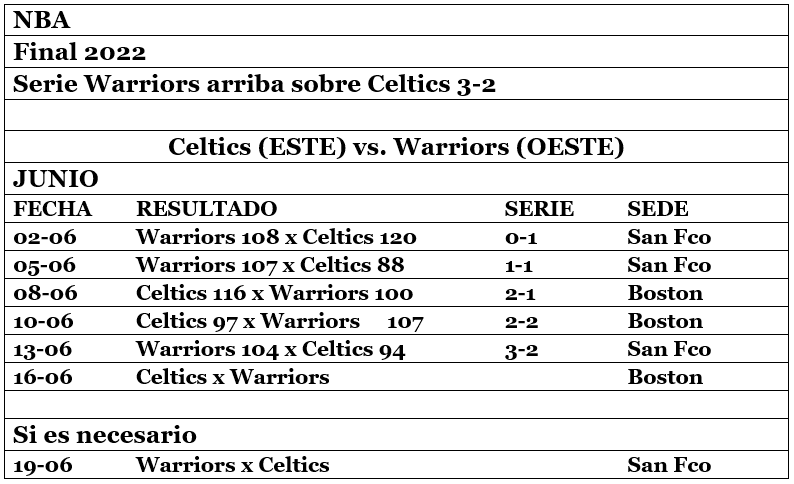 Los Celtics de Jayson Tatum (27 puntos) y Jaylen Brown (18) están ahora obligados a ganar el sexto partido, que hospedarán el jueves en el TD Garden, para evitar que Golden State reviva su dinastía alzando el cuarto campeonato desde 2015.