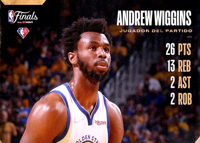 El canadiense Wiggins, con 26 puntos y 13 rebotes, asumió las responsabilidades de un apagado Stephen Curry (16 puntos), que se quedó sin anotar un triple por primera vez en sus 133 juegos de playoffs.