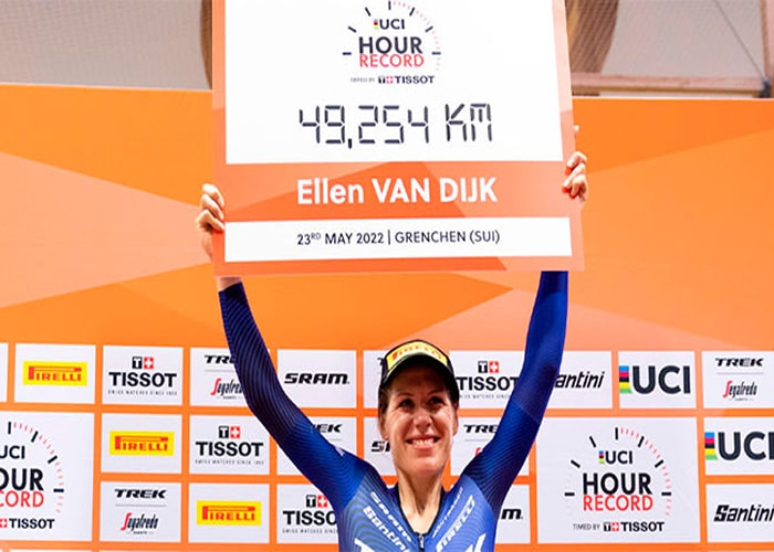 La neerlandesa Ellen van Dijk batió el récord del mundo de la hora en categoría femenina, que llevó a 49,254 kilómetros, este lunes en la pista del velódromo de Granges, en Suiza.