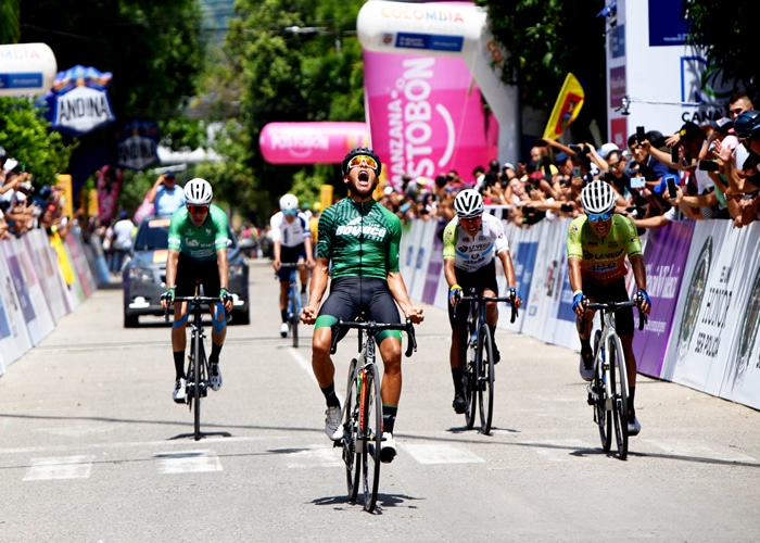El juvenil boyacense entró en la meta en primer lugar tras superar en el sprint de cinco corredores a los guatemaltecos José Canastuj (Alcaldía La Vega 4WD-Deluxe) y Alex Rony Julajuj (Alcaldía La Vega 4WD-Deluxe), quienes hicieron el segundo y tercer puesto. Cristián David Rico (Colombia Tierra de Atletas GW Shimano) entró con el lote y mantuvo el liderato de la carrera.