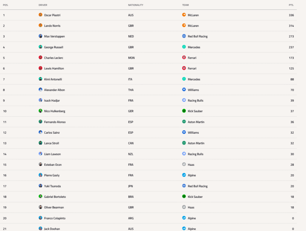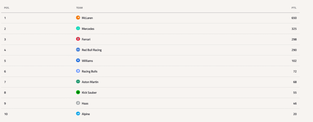 Clasificaciones en la previa del GP de USA, McLaren Campeón de Constructores