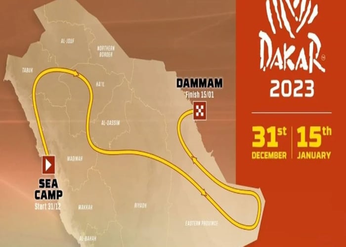 La edición de 2023 comenzará al borde del Mar Rojo, a 200 km de Yedá, con un prólogo, y el final de la prueba será el 15 de enero en la ciudad de Dammam, que da al golfo Pérsico.