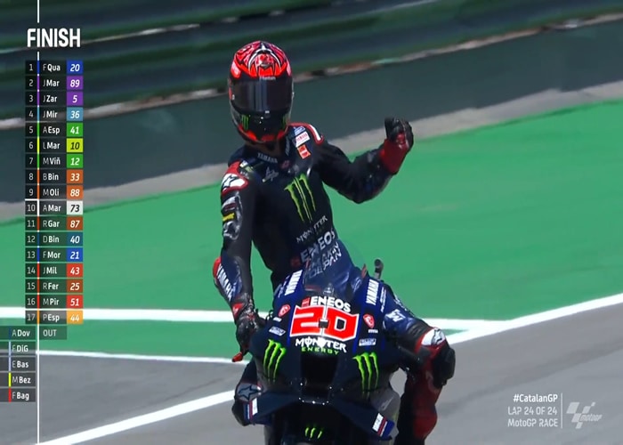 El francés Fabio Quartararo (Yamaha) ganó este domingo el Gran Premio de Cataluña de MotoGP, lo que permite al vigente campeón del mundo afianzarse en el liderato del Mundial de la categoría.